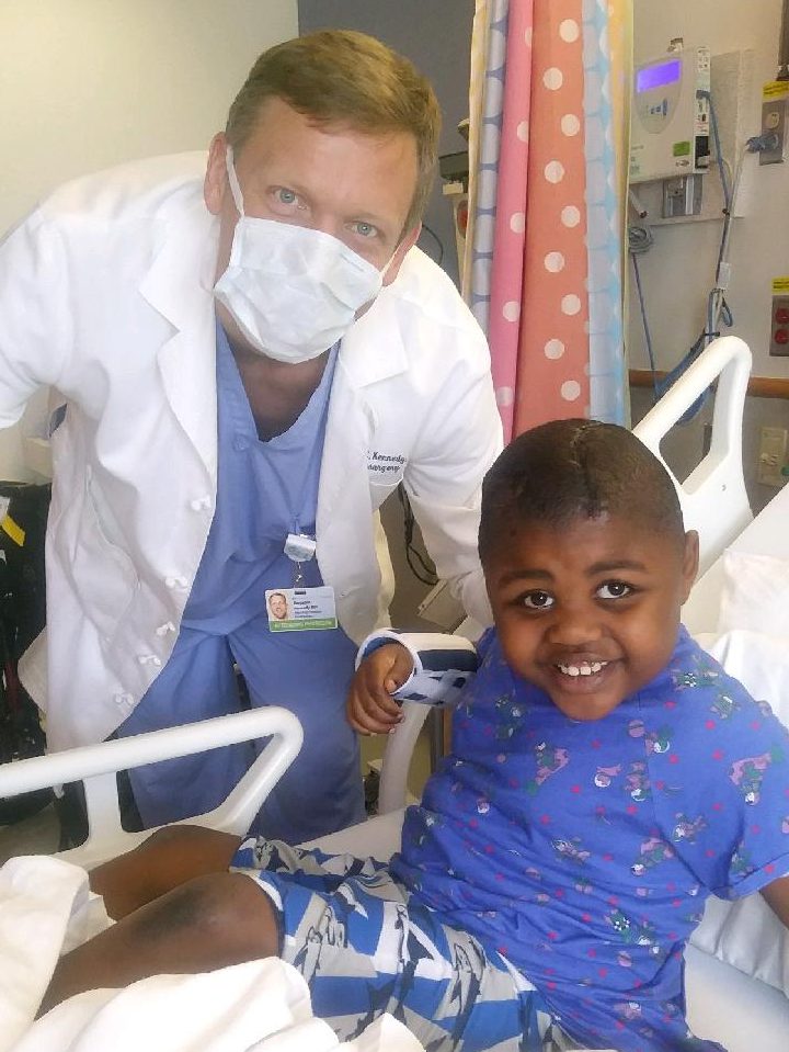 Kennedy had just assessed Matthew and determined that he is handling his own cerebral spinal fluid and no shunt revision is needed! Dr. Kennedy was also very happy about how is head is healing. Joan said that he was so happy that he was totally fine with Joan taking all kinds of pictures until she got one right 😊. Joan says, “He is our super surgeon and I think Matthew is his favorite patient!””
